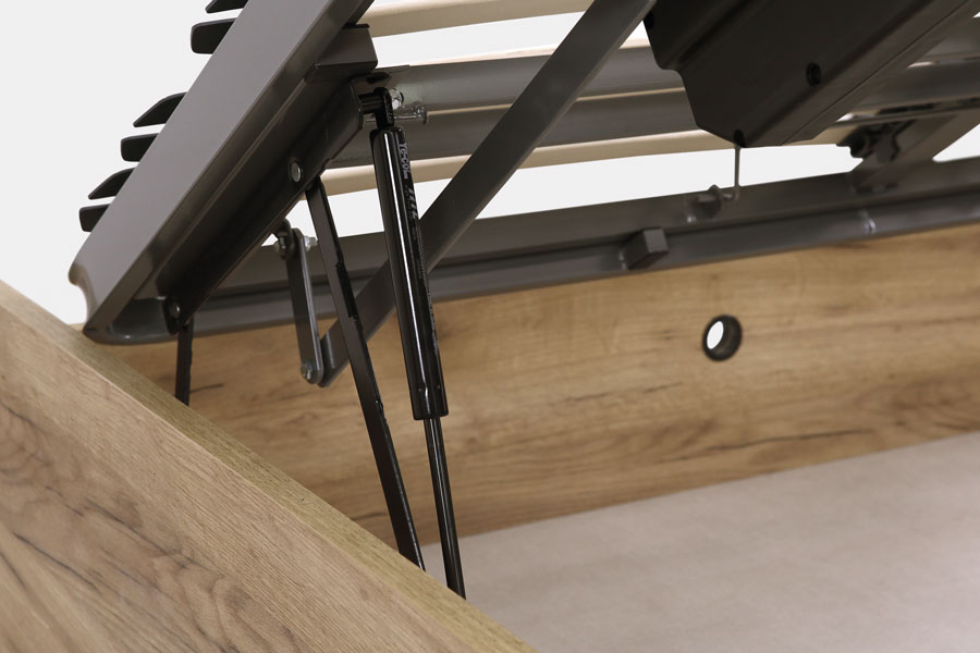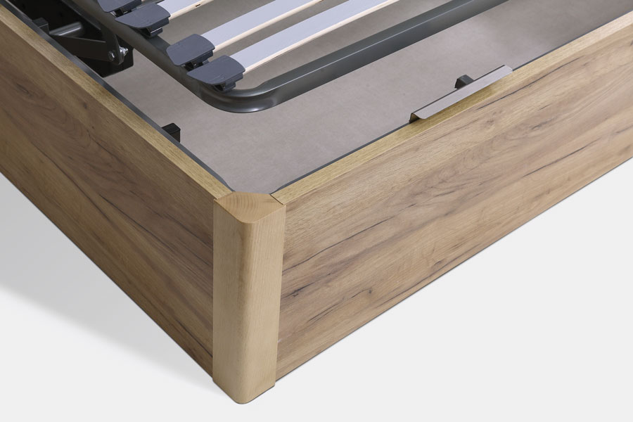 El canapé de madera Gloria con tapa motorizada es robusto, elegante gracias a sus acabados en madera, y muy funcional. Tapa con mando permitiendo configurar el descanso al cuerpo de cada persona. Patas macizas en haya de 4,5 cm.