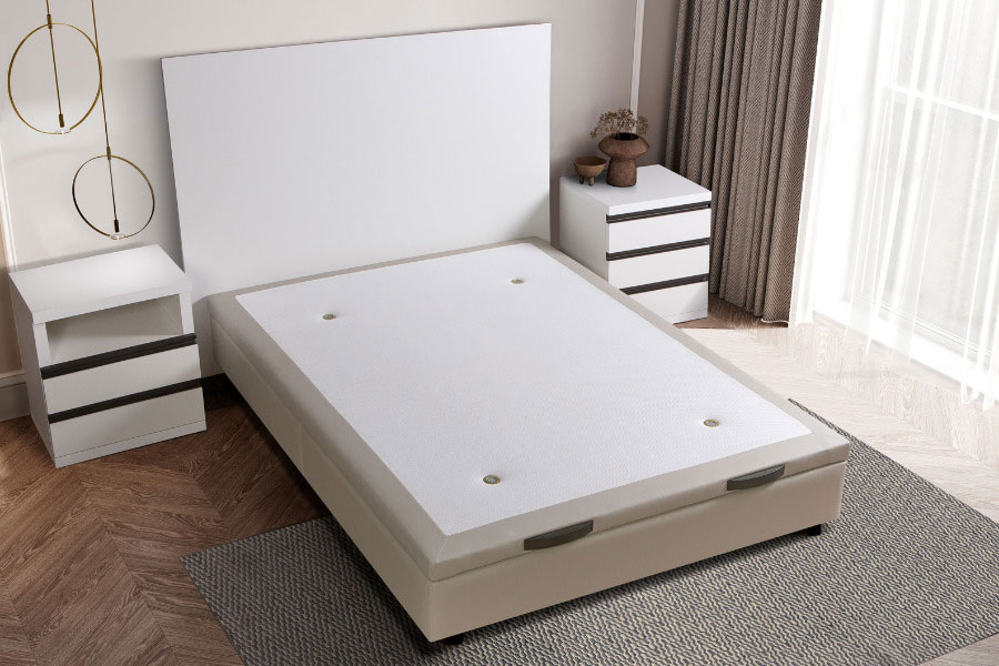 - Tapa tapizada con canto en polipiel o tela de serie (colores polipiel y tela disponibles en nuestros muestrarios), Acolchada en fibra hueca compactada y tratada para una mayor transpiración del colchón (colores de 3D disponibles: chocolate, blanco, negro, beige o plata).