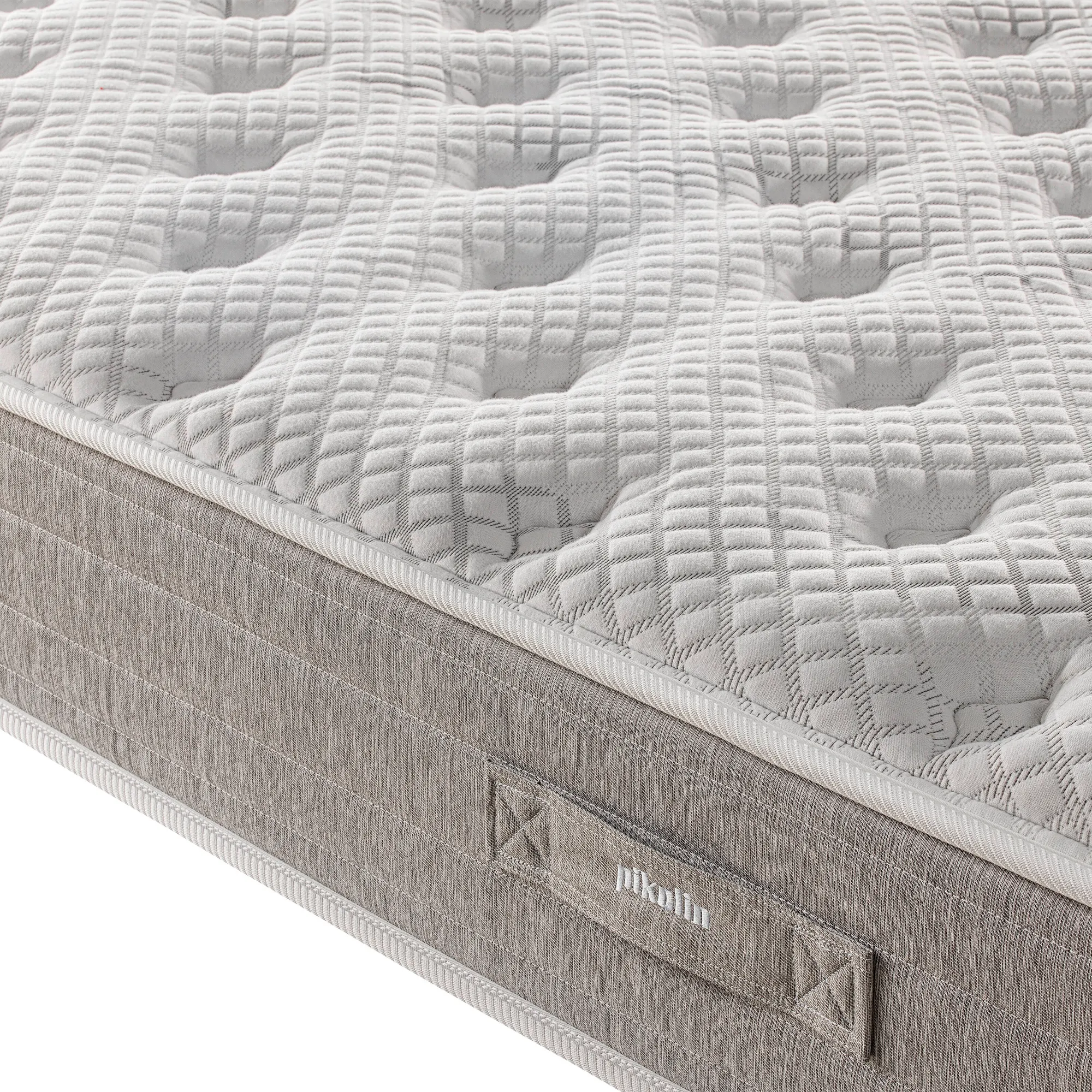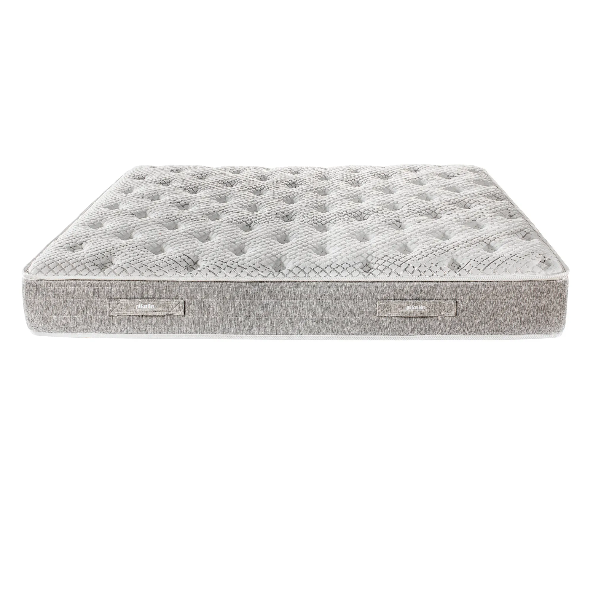 El colchón Astra Ensacado es la elección perfecta si buscas una excelente ergonomía y un equilibrio ideal entre suavidad y soporte, con una altura de 27 cm y firmeza media. Su núcleo de muelles ensacados Adapt-Tech está formado por muelles independientes que amortiguan cada zona de tu cuerpo por separado, asegurando una postura correcta y la independencia de lechos para que no notes los movimientos de tu pareja. La sensación de confort se eleva gracias al acolchado FiberCel+®, una combinación avanzada que integra una capa adicional de poliéter HR para ofrecer una acogida extra suave y mullida, junto con fibra atérmica que permite que el aire circule constantemente para una transpiración idónea. Por último, disfrutarás de un descanso totalmente higiénico con la tecnología Triple Barrera, un escudo permanente contra ácaros, bacterias y hongos.